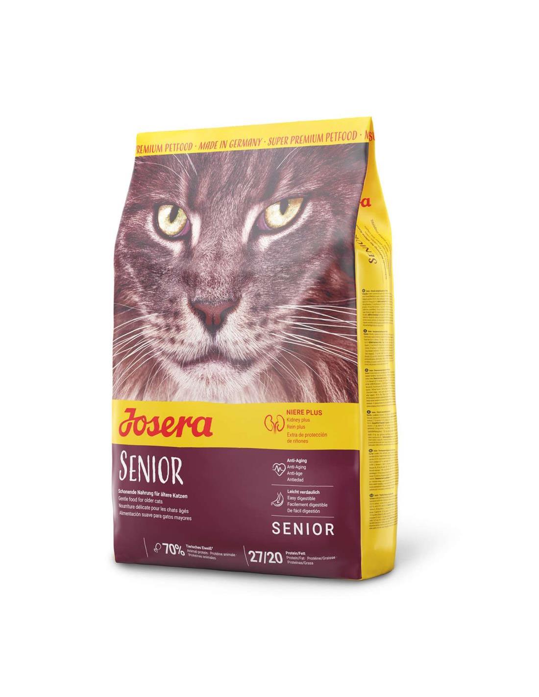 Alimento completo para gatos mayores. JOSERA Senior, con un contenido reducido de fósforo y valiosos antioxidantes adicionales, es el alimento ideal para gatos mayores o para gatos con una insuficiencia renal crónica.