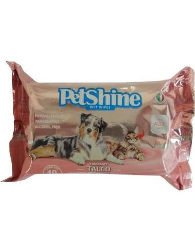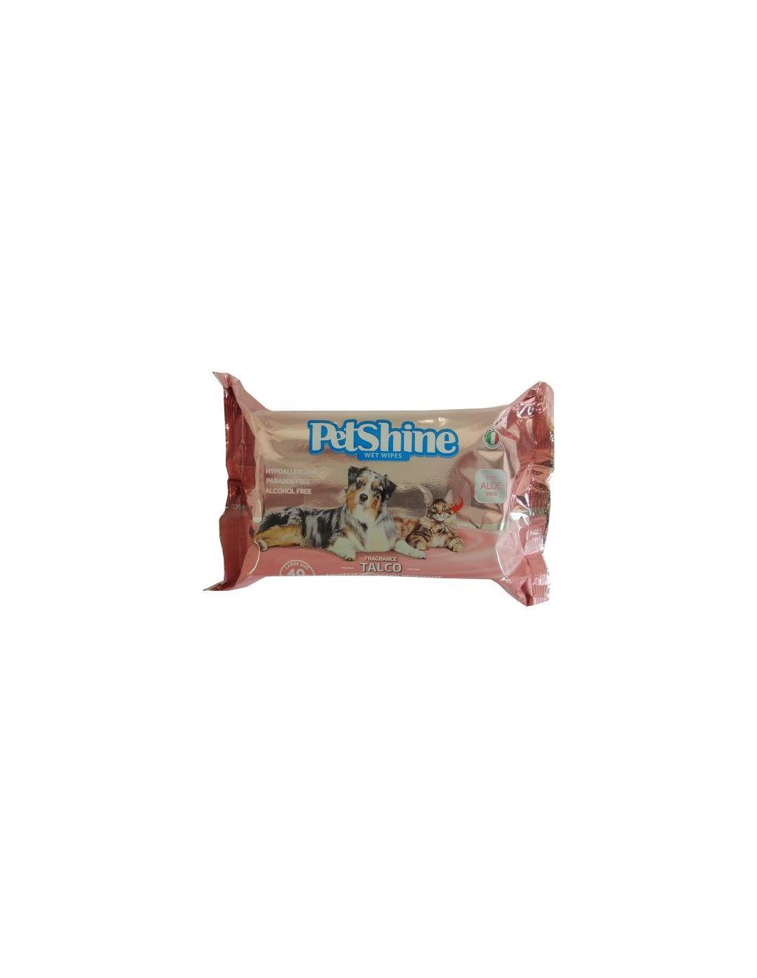 Fragancia: Aloe Vera, 40 Toallitas por Bolsa para Perros y GatosLas toallitas detergentes Petshine son ideales para la higiene cotidiana de su amigo de cuatro patas; ejercen una eficaz acción desodorante y detergente. Embebidas de una solución perfumada sin alcohol, limpian y refrescan delicadamente a su animal.