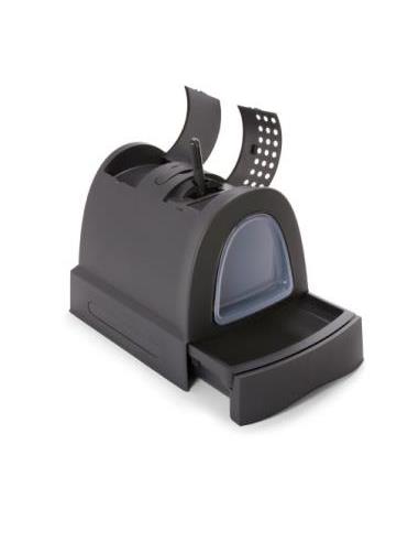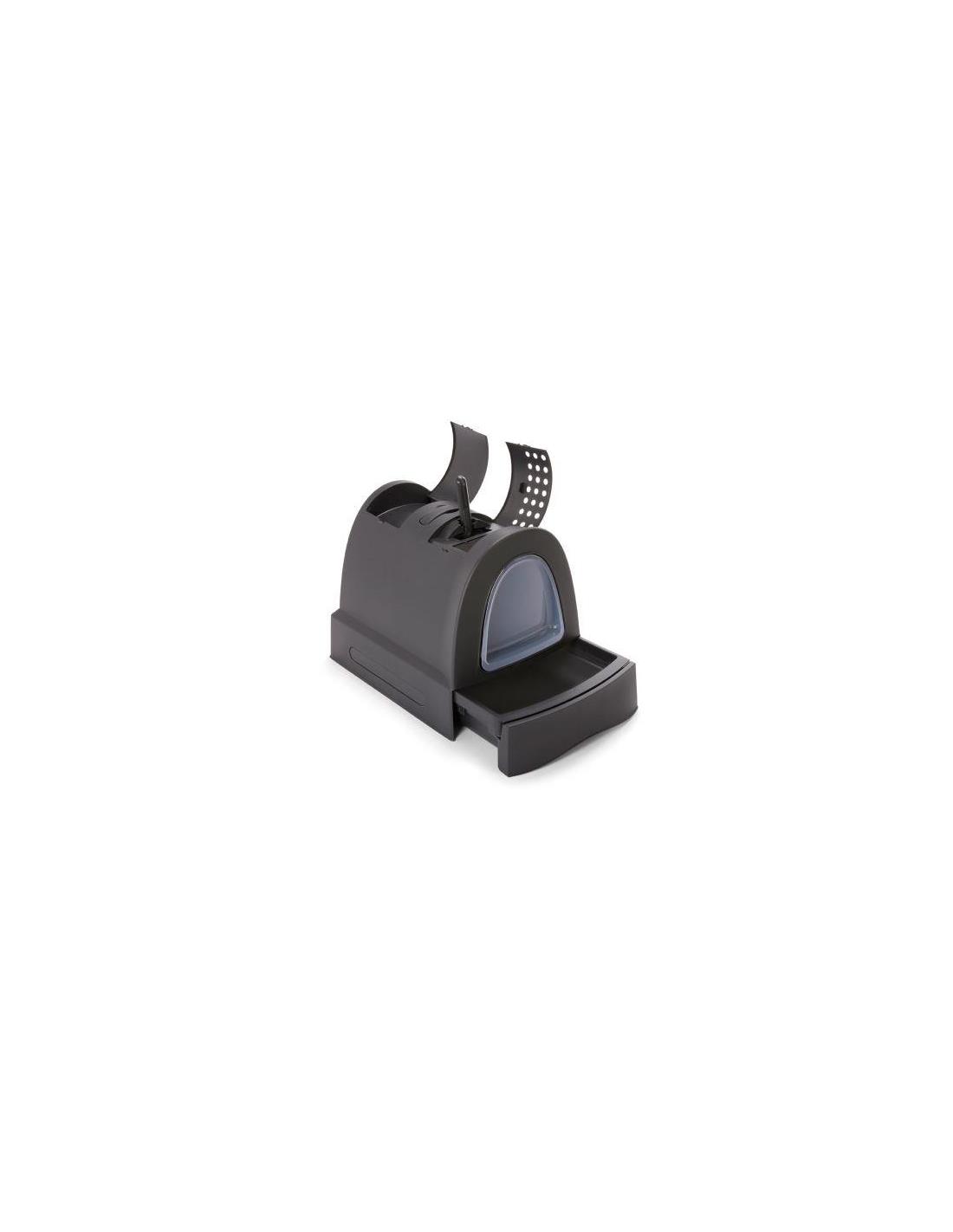 Arenero con diseño moderno que neutraliza los malos olores para gatos. El arenero para gatos Zuma de Imac es ideal para tener en casa un accesorio al cual tu felino pueda llegar y realizar sus necesidades tranquilamente. Combina un diseño moderno e innovador que resulta muy práctico ya que cuenta con una tapa de asiento higiénica, un asa de transporte oculta y una pala para recoger las deposiciones de manera limpia. Además, la limpieza del inodoro se facilita gracias al cajón de arena extraíble en la parte inferior. Esta caja de arena está fabricada en polipropileno no tóxico y con puerta basculante, todo con materiales de alta calidad para mayor durabilidad. Cuenta con un filtro de carbón activo, indispensable para neutralizar los malos olores y una rejilla de ventilación que promueve la circulación del aire dentro del arenero para que tu felino no se sienta incómodo al entrar en él.