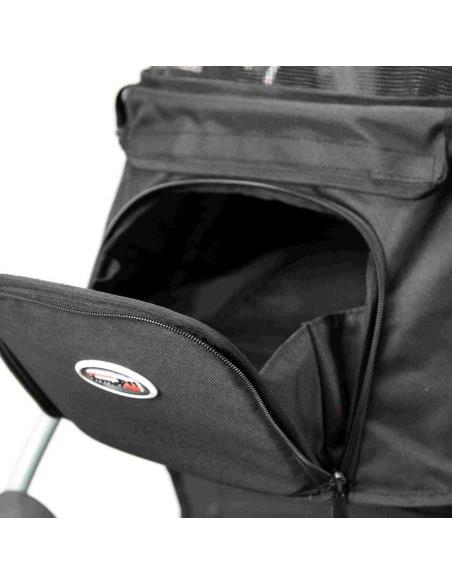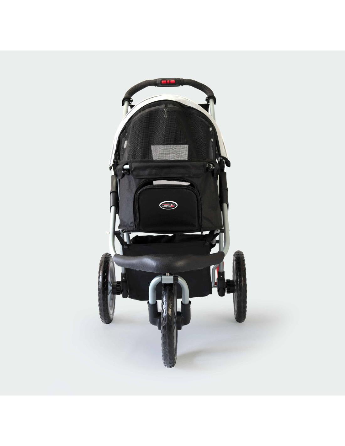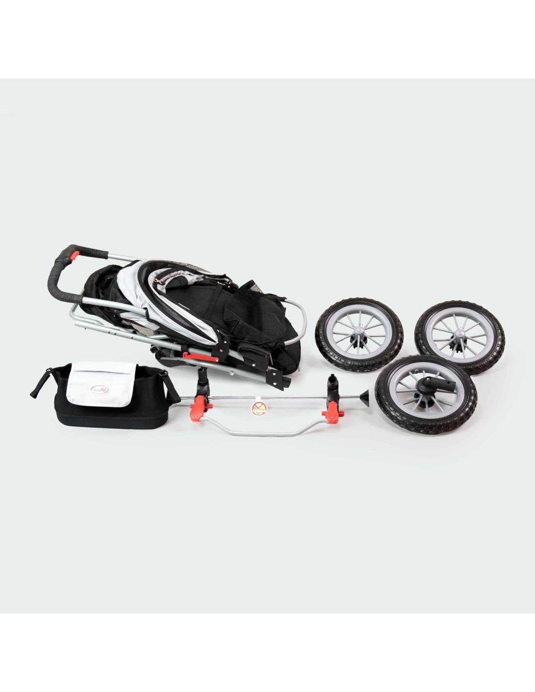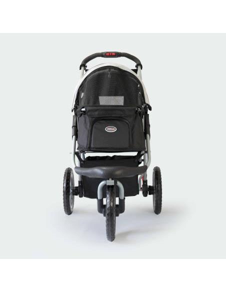 Peso neto: 11 kgPeso máximo permitido: 25 kg.Dimensiones interiores de la cabina: 66 x 33 x 48 cm (largo x ancho x alto)Dimensiones cochecito desplegado: 96 x 60 x 104 cm (largo x ancho x alto).Dimensiones silla de paseo plegada: 84 x 60 x 38 cm (largo x ancho x alto)Barra de empuje de altura: 104cm.Material de las ruedas: EFA.Diámetro de las ruedas: 12 pulgadas.Plegado con una sola mano: Sí.Cubierta de lluvia incluida: no (opcional).Este cochecito para perros contiene mucho espacio para su perro, sus bebidas y snacks, la correa para pasear, un juguete y posibles comestibles: