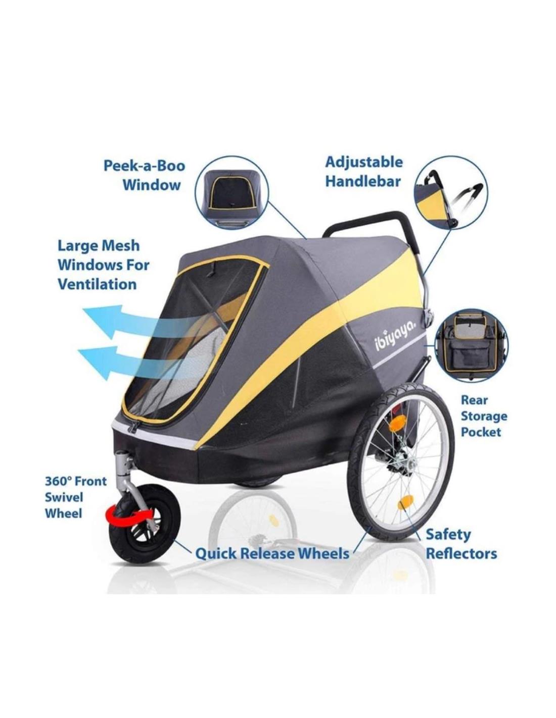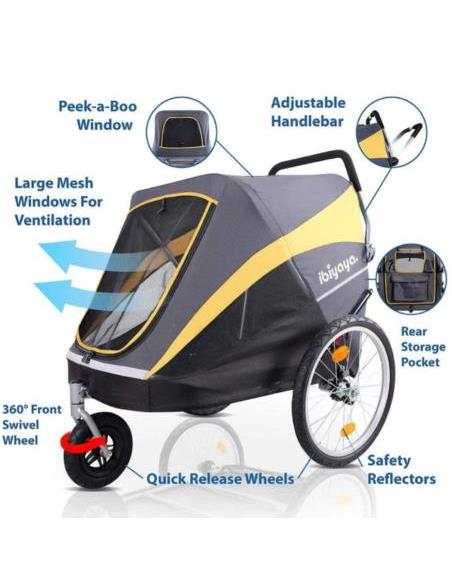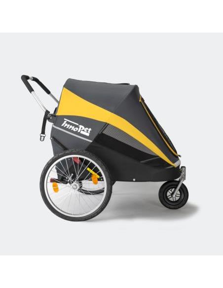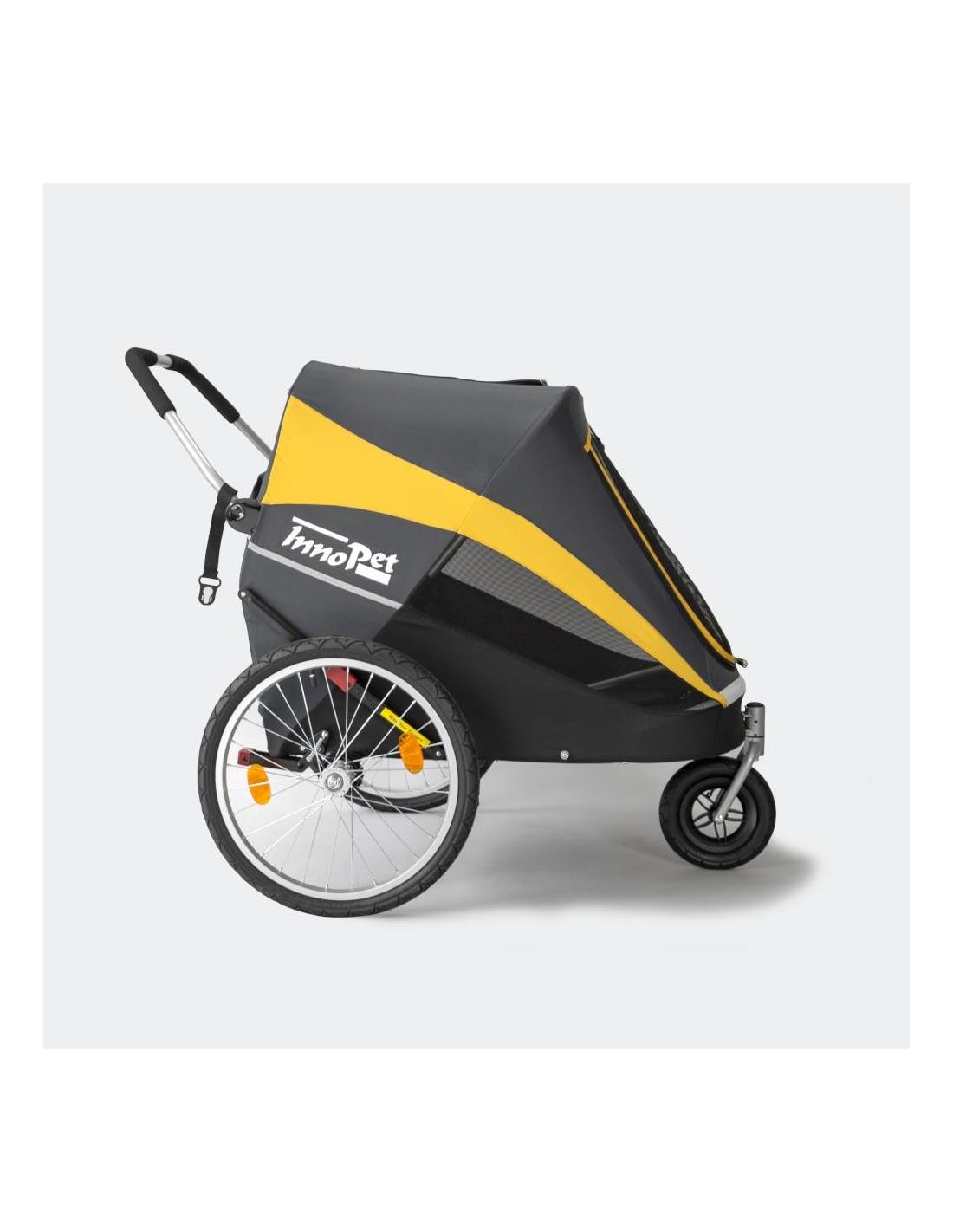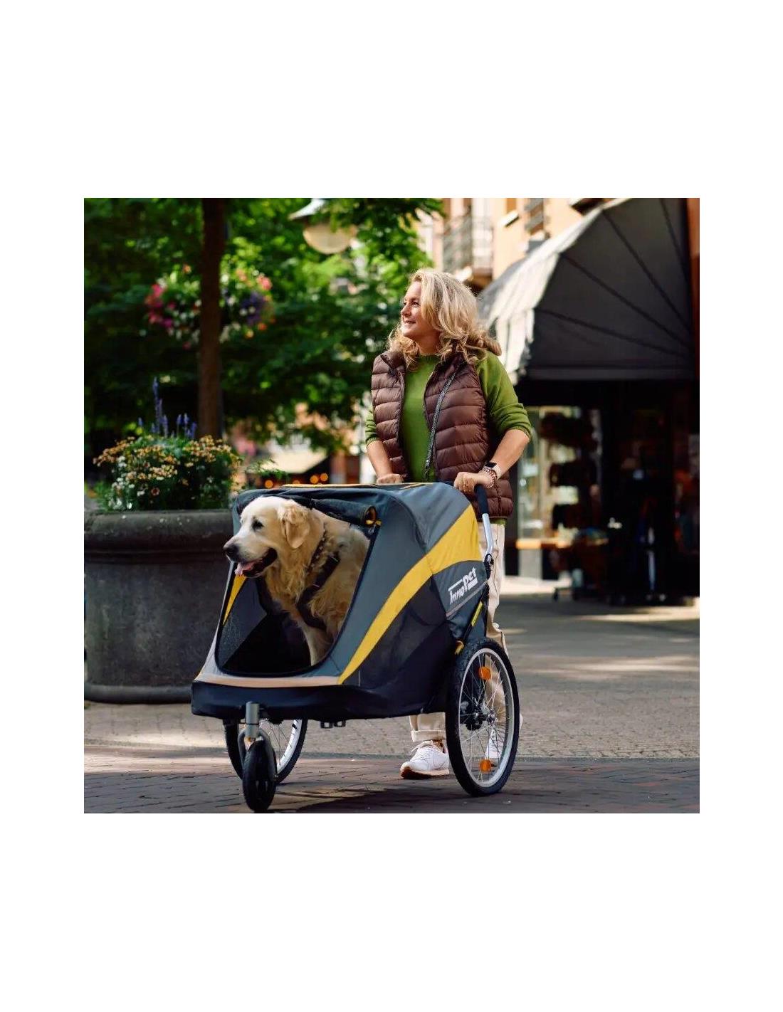 Carrito para perros y gatos convertible en remolque de bicicleta.El InnoPet® Sporty Dog Trailer Deluxe es un remolque para bicicletas y un carrito para perros todo en 1.El Sporty Dog Trailer es más que un cochecito para perros, es la manera perfecta de disfrutar de todas tus actividades favoritas con tu mejor amigo.Lleva a tu perro al parque de cachorro y...