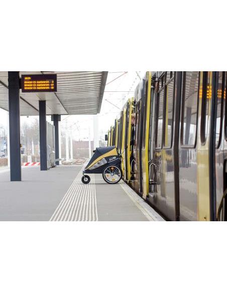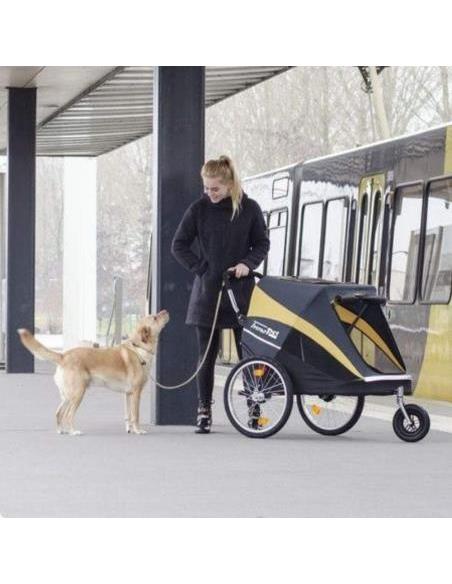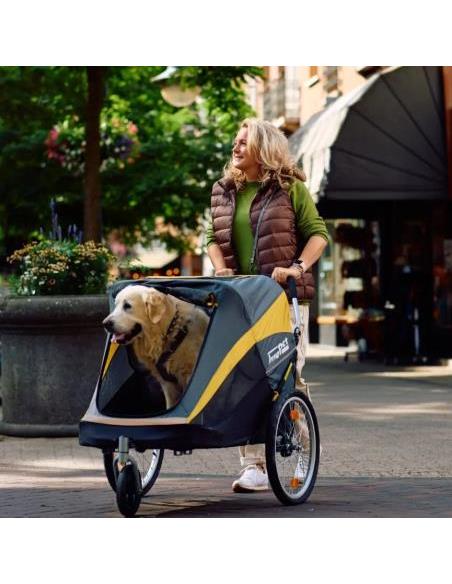 Carrito para perros y gatos convertible en remolque de bicicleta.El popular Sporty Dog Trailer Deluxe ha recibido un nuevo aspecto: The Sporty Evolution. Con este remolque para perros y cochecito en uno, puedes llevar a tu fiel amigo de cuatro patas a todas partes. El Sporty Evolution puede transportar peso de hasta 30 kilos. Los neumáticos grandes y...