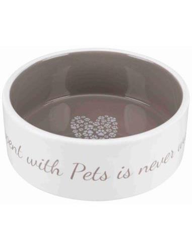 Comedero de cerámicaApto para lavavajillas Marrón oscuro con huellasAdecuado como comedero o bebedero para perros o gatos. El comedero es pesado, por ello antideslizante. Fácil de limpiar y por ello muy higiénico,