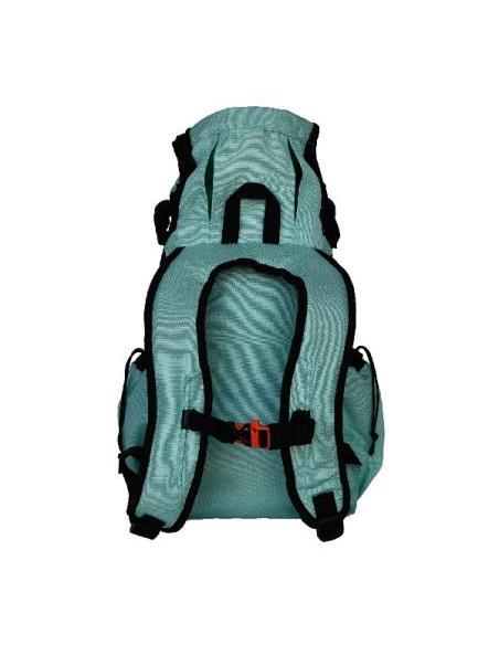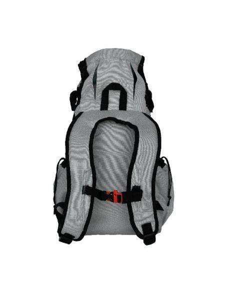 Características: Paneles laterales ventilados para refrescar.Bolsillos laterales dobles ajustables.Correa pectoral con clip para silbato para avalanchas.Base amplia para tu mascota y su cola.Nuevas correas Cinch en el lateral y en la espalda.Solapa de piel para evitar pelos entre la cremallera.Alojamiento de cuello ajustable