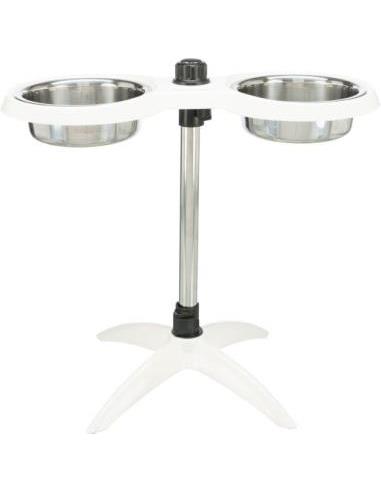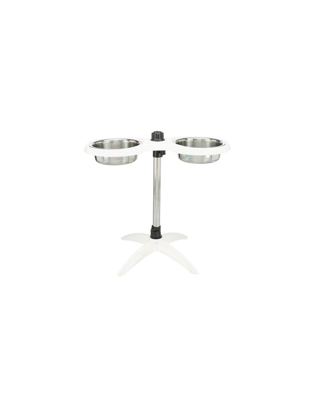 Soporte Comedero Perros, de altura ajustable, Melamina/Acero Inox, 2 × 2.4 l/ø 25 cm, Blanco
