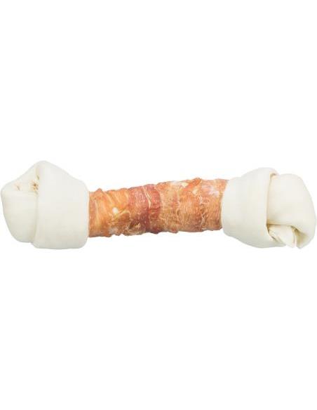 Composición: piel vacuno, carne de pollo (8%), alimidón de maíz, glicerina.